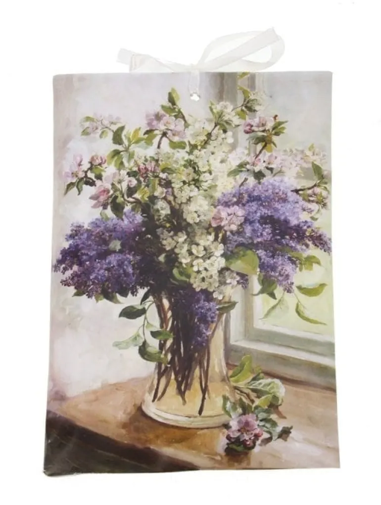 Geurzakje met een prachtige vintage afbeelding van een vaas met bloemen in de kleuren wit/paars