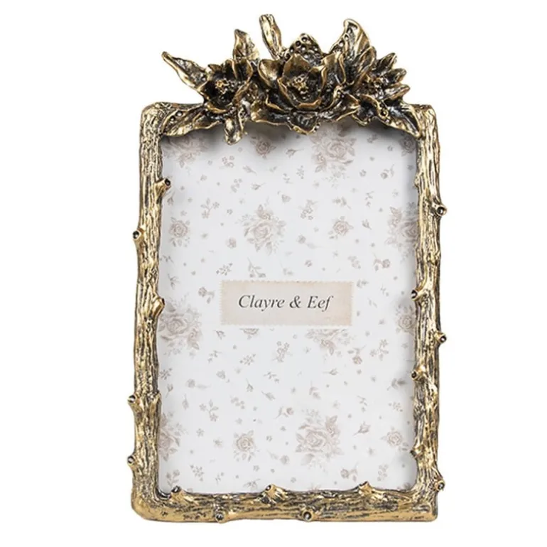 Goudkleurige ijzeren fotolijst bloemen9*13
