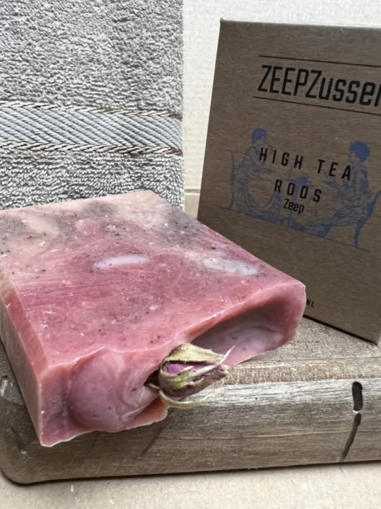 Deze heerlijk geurende en fijne verzorgende zeep heeft een mooie melange van roze kleuren, diverse soorten klei en een heerlijke geur van thee en vruchten.