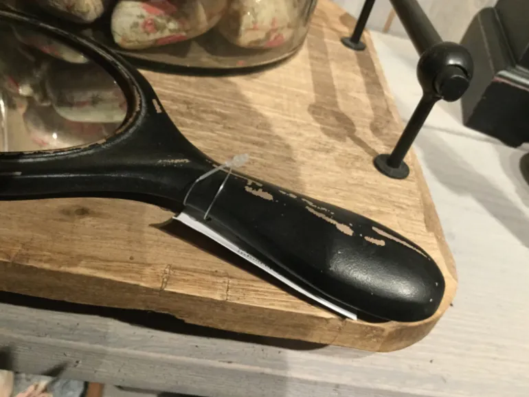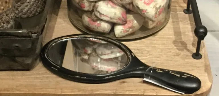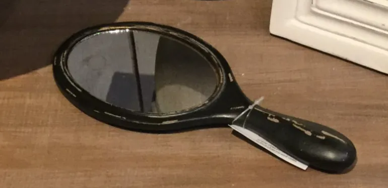 Leuke handspiegel voor op je landelijke toilettafel of ter decoratie! De handspiegel is zwart en oud gemaakt daardoor heeft hij een brocante uitstraling.