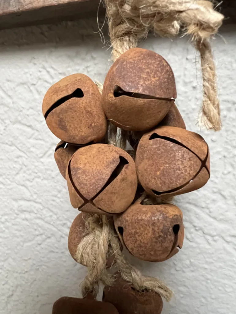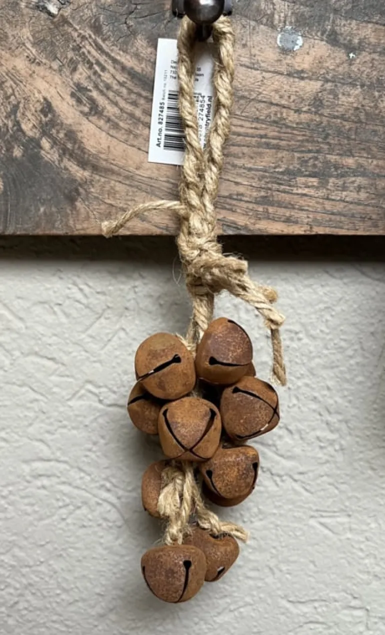 Stoere hanger met roestbruine bellen aan een stoer touw!