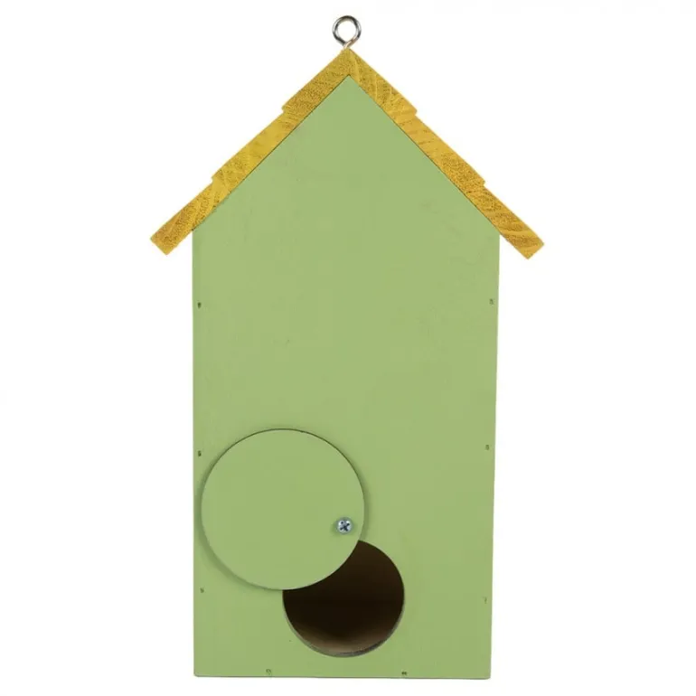Ontdek dit stijlvolle houten vogelhuis, perfect voor jou tuin of balkon. Het groenvogelhuis heeft een geeldakje en een print met mooie bijtjes! Dit charmante huisje biedt een veilige plek voor vogels om te nestelen. Voeg een vleugje natuur toe aan je buitenruimte en geniet van het gezang van vrolijke vogels!