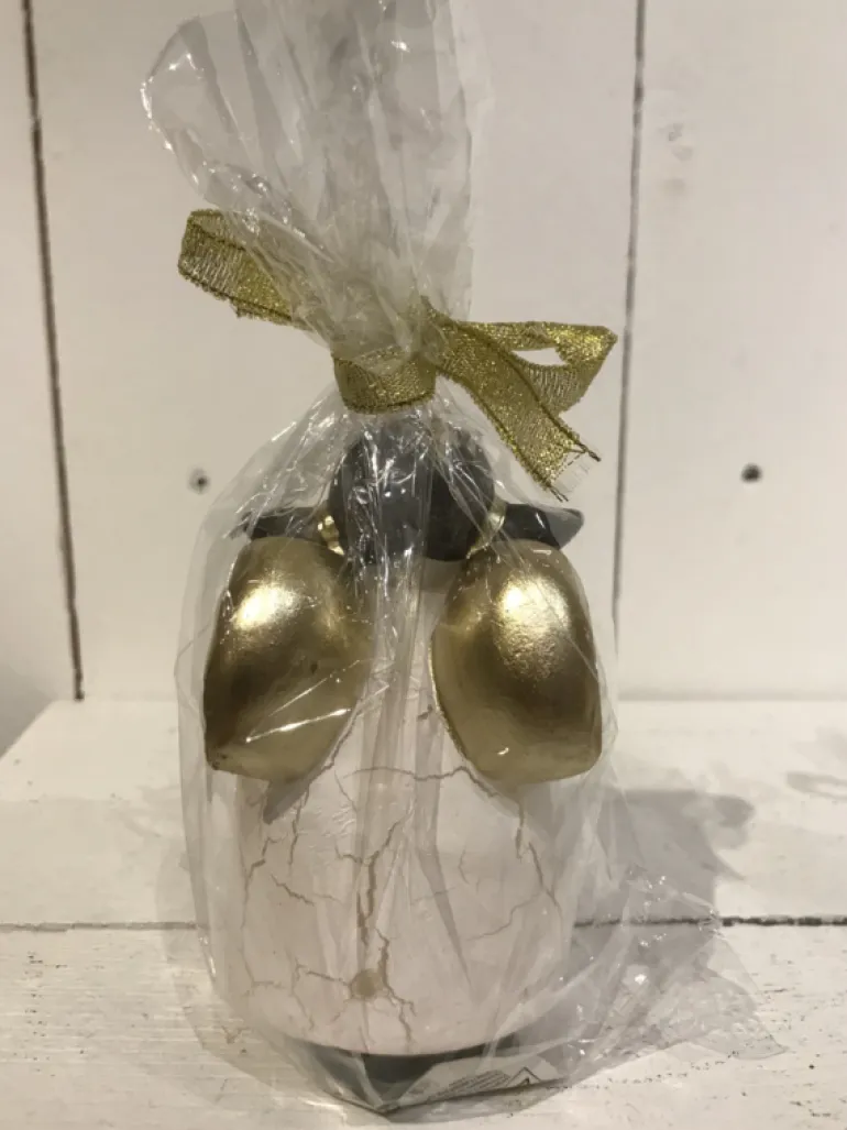 •verpakt in cellofaan met een gouden strikje