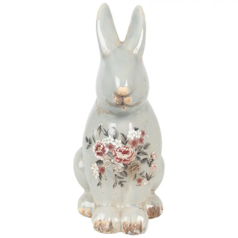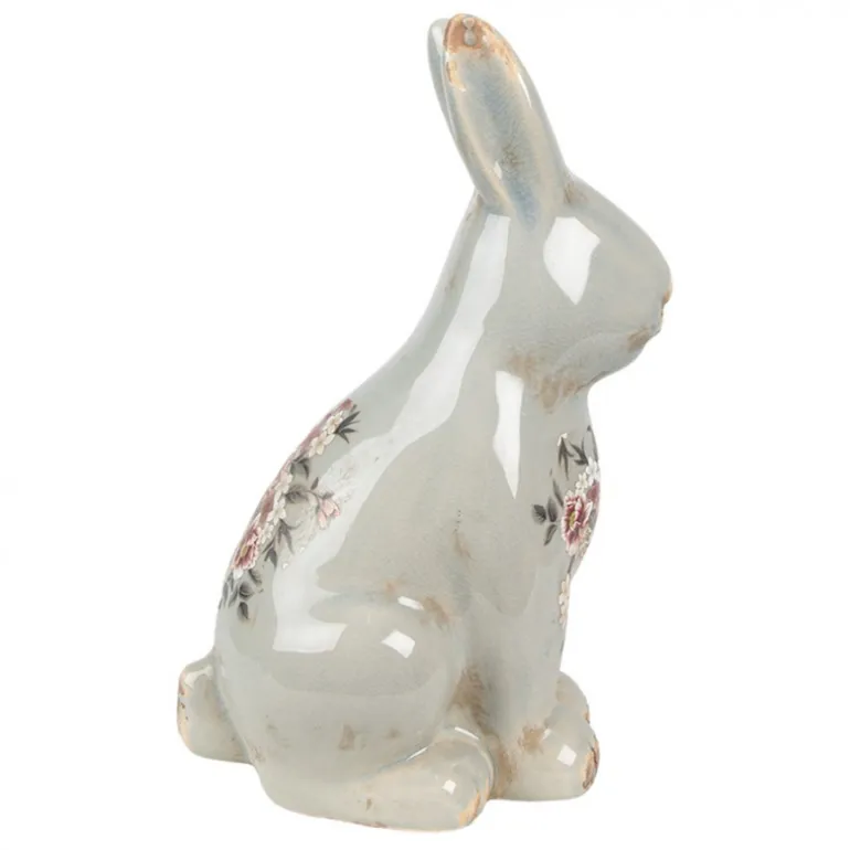 Keramiek decoratie konijn (M) roosjes grijs13*10*21