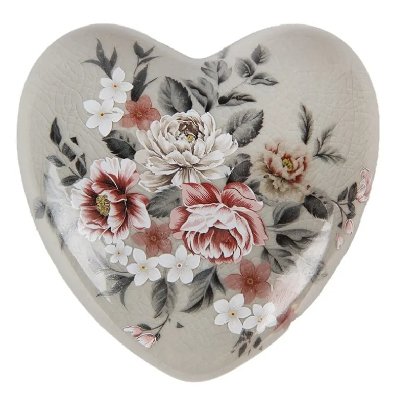 Prachtige hartvorm in een grijstint met rozenmotief, super leuk om mee te decoreren!