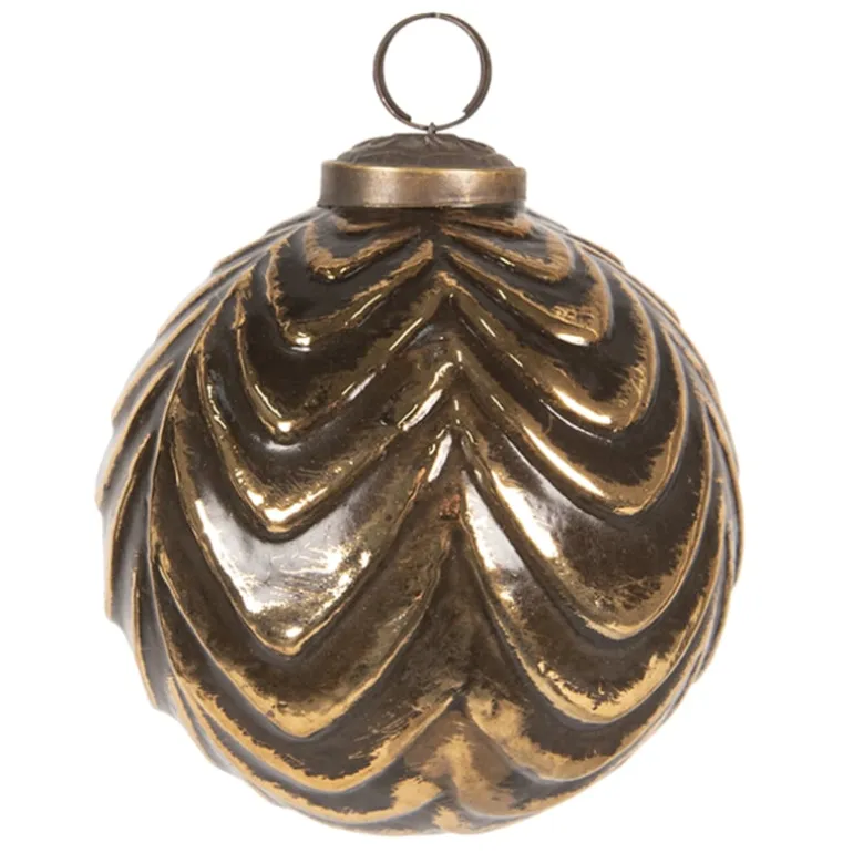 Kerstbal met een mooi motief in een donkerbruine/zwarte kleur gecombineerd met goudkleur
