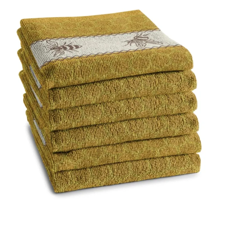 Deze keukendoek van DDDDD staat zoals de naam al doet vermoeden volledig in het teken van de bijen. De doeken hebben een all-over dessin van een honinggraat structuur en in de border vliegen vrolijke bijtjes rond. Met deze mooie kleur voeg je een speels effect toe aan je keuken.