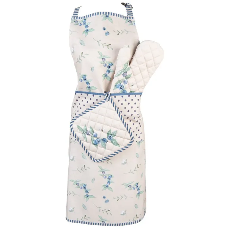 Zoek je een zomerse en gezellige textielserie dan zit je met Blueberry Fields van Clayre & Eef helemaal goed! Zoals de naam al zegt heeft deze textielserie een print met bosbessentakjes en hier en daar een vlindertje. Sommige artikelen zijn afgewerkt met een blauw/beigegestreepte band. De katoenen stofheeft beige als hoofdkleur en wordt gecombineerd met blauwe dots en/of een band metprint van bosbessentakjes. Super leuk om te combineren!