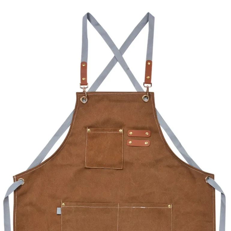 Leuke effen keukenschort in een denim look en heeft daardoor een landelijk stoereuitstraling. De keukenschort heeft diverse leather look labels. Dat wordt hip kokkerellen!