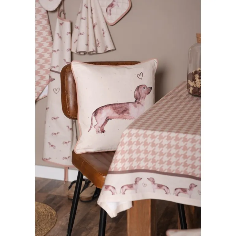 Ben je gek op teckels dan is deze textielserieDachshund Lovevan Clayre & Eef echt iets voor jou! De serie is gemaakt van katoenen stoffen in bruin/beige tinten met print van een leuke teckelsen hartjes. Er zijn combinaties met een geruite stof al dan niet afgewerkt met een band vol teckels en hartjes. Van deze serie zijn er naast volwassenen ook een keukenschort, ovenhandschoen en pannenlap voor kinderen verkrijgbaar!