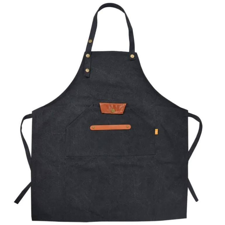 Leuke keukenschort met een denim look en heeft daardoor een landelijk stoereuitstraling. De keukenschort heeft diverse leather look labels. Dat wordt hip kokkerellen!