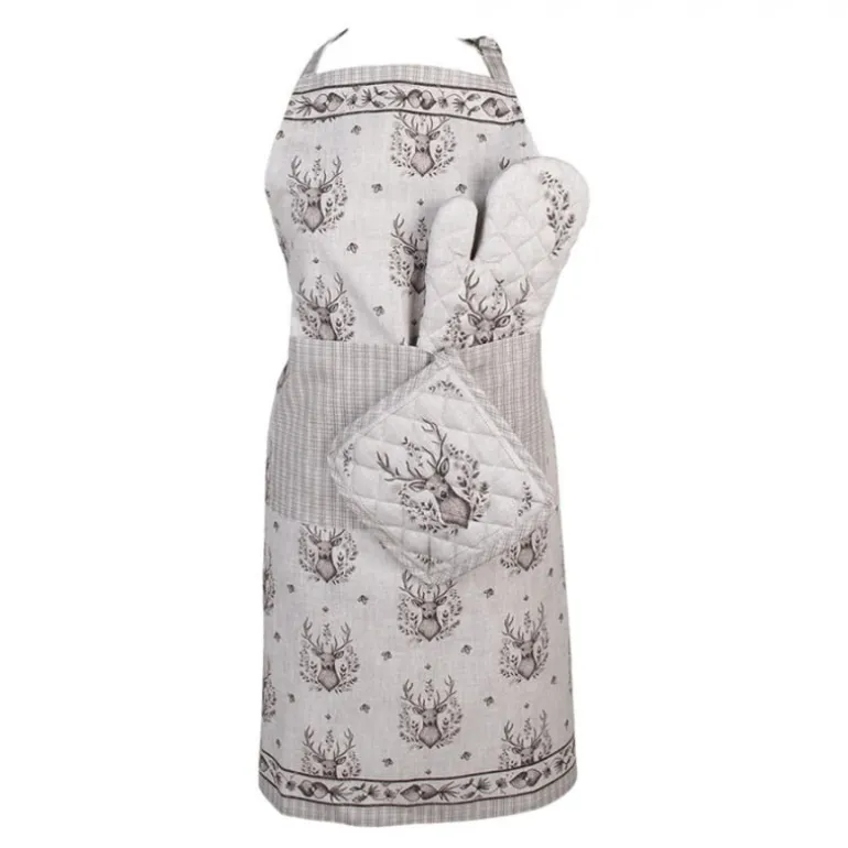 De textielserieGentle Wildernessvan Clayre & Eef in een mooie beige tint brengt een sfeervolle vintage uitstraling naar elke keuken. Versierd met elegante hert-motieven en gedetailleerde planten illustraties, straalt elk item warmte en charme uit. Deze collectie omvat alles wat je nodig hebt om elke keuken instijl te verfraaien. Van prachtige tafelkleden en stijlvolle theedoeken tot praktische schorten en decoratieve placemats. Elk stuk is ontworpen met oog voor detail en kwaliteit, waardoor functionaliteit en esthetiek perfect samengaan. Breng een vleugje nostalgie en natuur in elk interieur met deze unieke en sfeervolle keukencollectie.