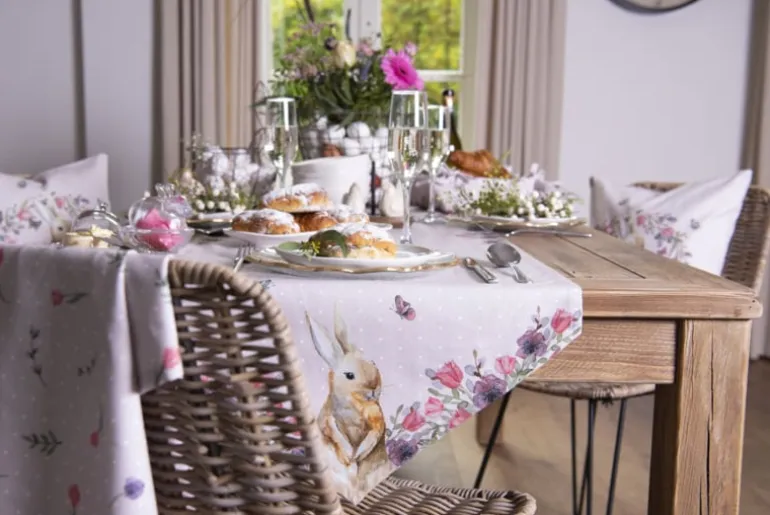 Met deze prachtige textielserie “Happy Bunny” van Clayre & Eef creër je direct een gezellige sfeer in landelijke stijl. Zeer geschikt met Pasen maar ook als je van mooie textiel met konijntjes houd is dit zeer aan te bevelen.