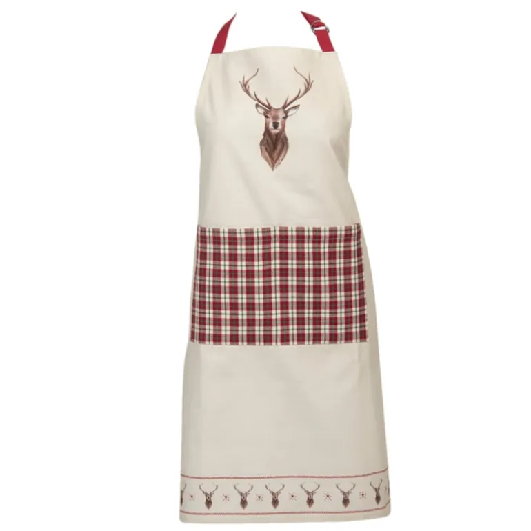 •Keukenschort heeft een grote zak aan de voorzijde van geruite stof.