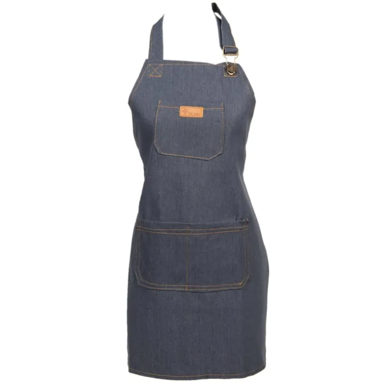 Leuke keukenschort voor kinderen in Denim look, aan de voorzijde een grote zak en aan de bovenzijdeeen klein zakje met label!