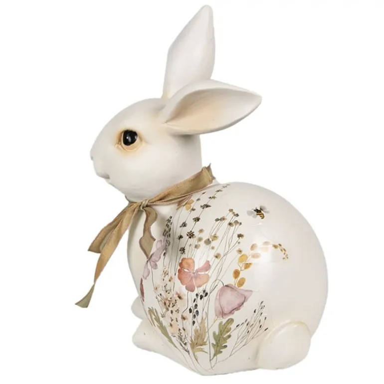Prachtig konijntje welk aan 1 kant beschilderd is met fleurige bloemen en een strikje om de hals. Een schattig beeldje voor wie van konijntjes houd, leuk voor Pasen maar natuurlijk ook voor de rest van het jaar!