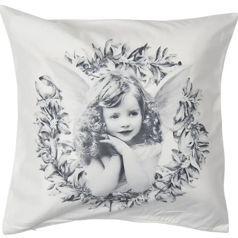 Kussenhoes engel kranswit/grijs