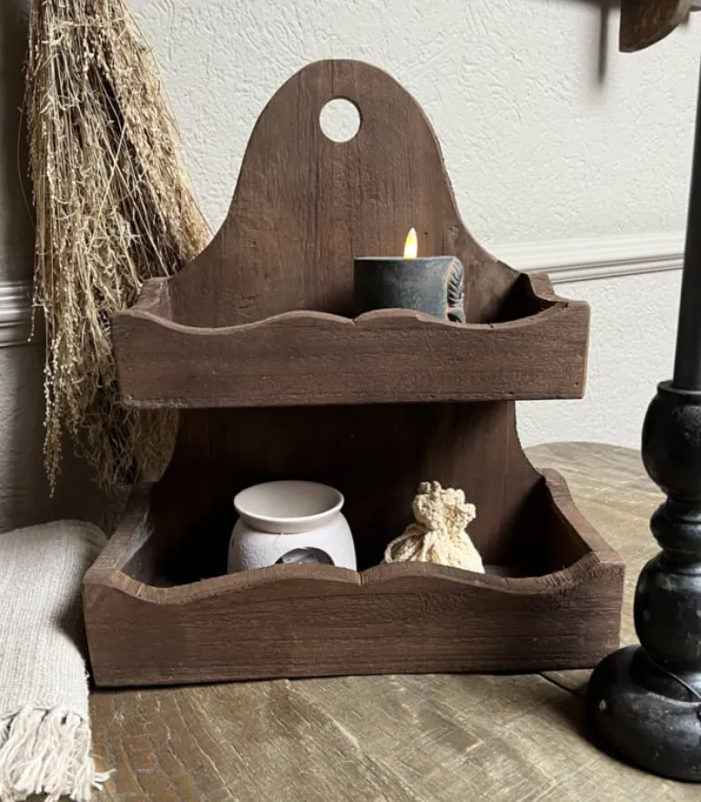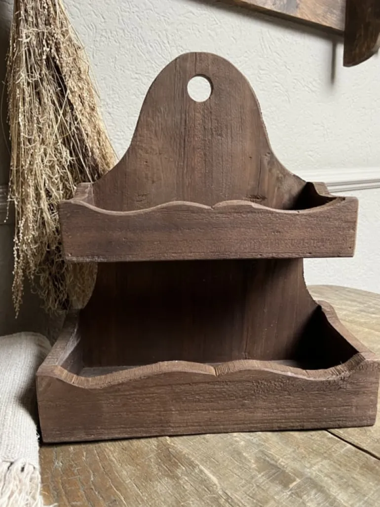 Super leuke maar ook stoere houten bak met 2 lagen. Door de mooie vormgeving past deze bak erg goed in een landelijk interieur! Mooi met decoratie op toilet, badkamer, keuken of woonkamer!