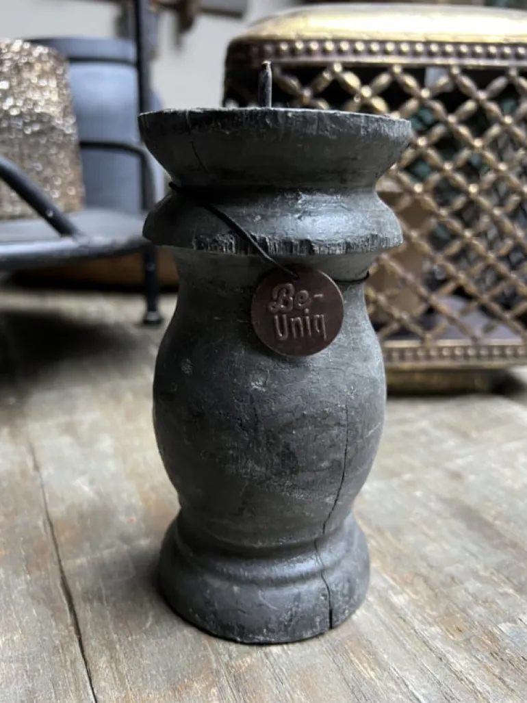 Landelijke kaarsenhouder/kandelaar zwart hout