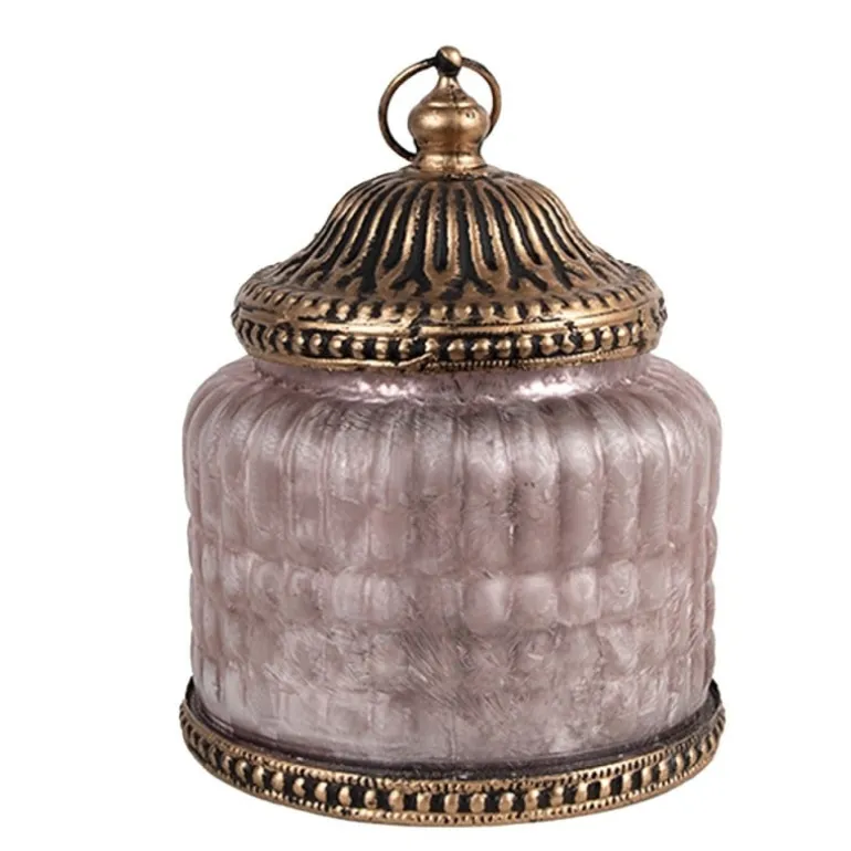 Lantaarn met LED 10*13 roze glas