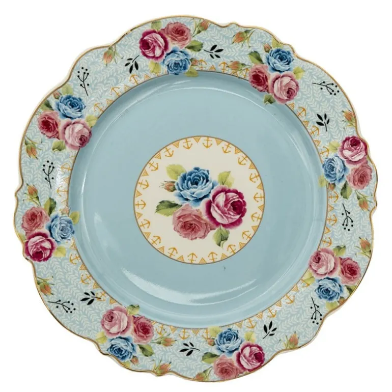 Ontbijtbord rozen blauw