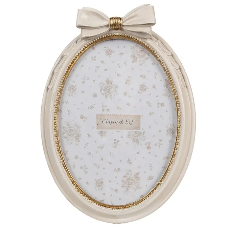Ovale fotolijst met strik beige/goud 13*18