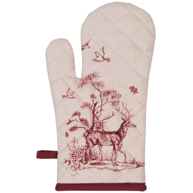 Een textielserie met een nostalgisch tintje die je doet denken aan grootmoederstijd. Het prachtig geïllustreerde bostafereel met herten en eekhoorns vormen een pracht patroon. Eenkleine textielserie met items als keukenschort, pannenlap, ovenhandschoen en keukendoeken die zeker sfeer brengen in de landelijke keuken. Ook met de bijpassende kussenhoes verhoog je de sfeer in de (leef) keuken of zithoek.