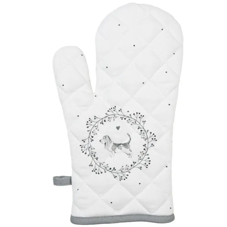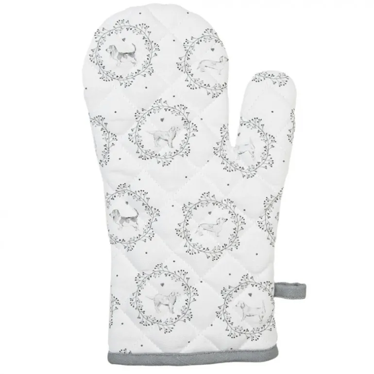 Ovenhandschoen wit/grijs hond