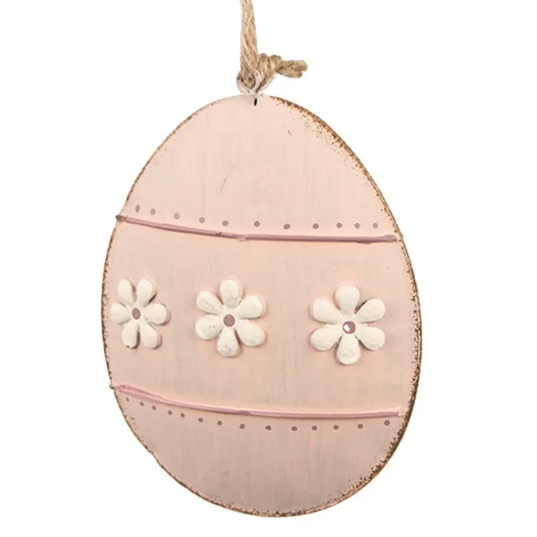 Leuke hanger in de vorm van een ei. Het ei is aan 1 kant roze van kleur en is versierd met beige bloemetjes. De achterkant van het ei is bruin.