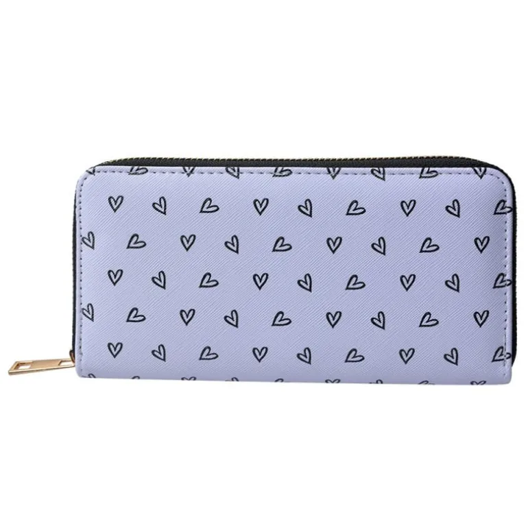 Handige en leuke portemonnee met veel opbergruimte. Gemaakt van een goede kwaliteit kunstleer met een leuke print van lieve zwarte hartjes op een witte achtergrond.