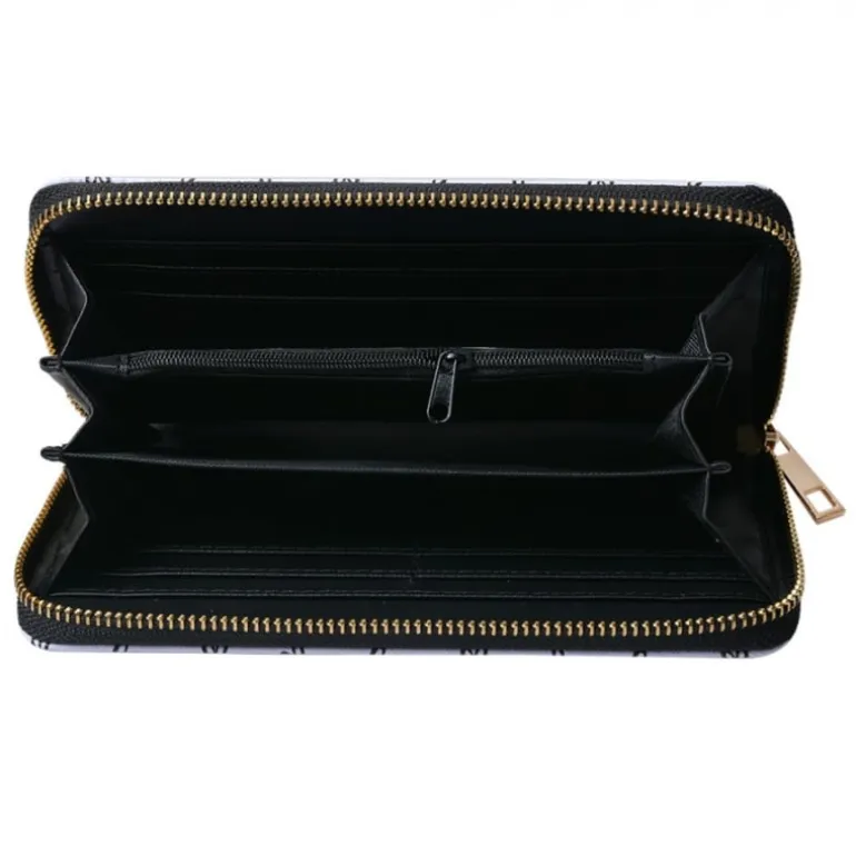 De portemonnee sluit met een goudkleurige rits en heeft 3 vakken waarvan 1 met rits. Daarbij iserveelruimte voor pasjes en je mobiel past erin!