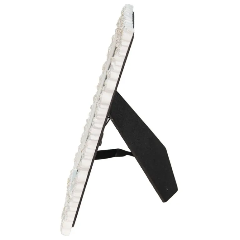 Mooie fotolijst in eenromantische sfeer, op de rand bevinden zichallemaal kleine bloemetjes. De fotolijst is wit, geen spierwit en heeft een beetje goudkleur op de blaadjes van de bloemetjes.