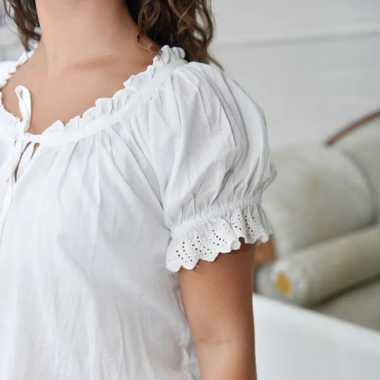 Romantische witte pyjama met korte mouwen en ruches S/M