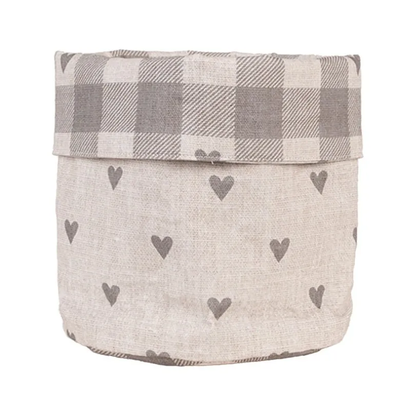 Gemaakt van een katoenen stof met een landelijke ruit gecombineerd met lieflijke hartjes. De serie is verkrijgbaar in de kleuren rood/wit en beige/grijs.