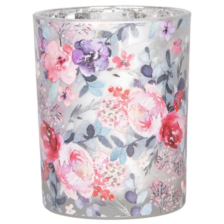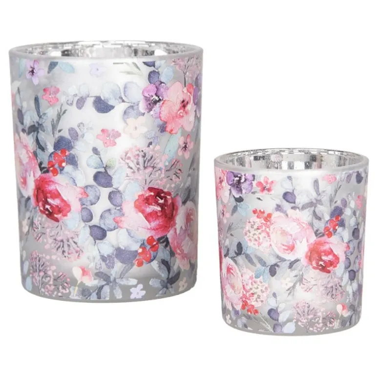 Mooie set van 2 glazen waxinelichthouders met een motief vanfleurige rozen!