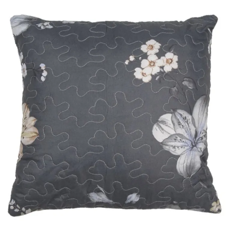Met een mooisierkussen creër je in een handomdraai een andere knusse en gezellige sfeer in de slaap of woonkamer! De sierkussenhoes heeft een landelijke uitstraling met een prachtig bloemen design op een donkergrijze achtergrond.