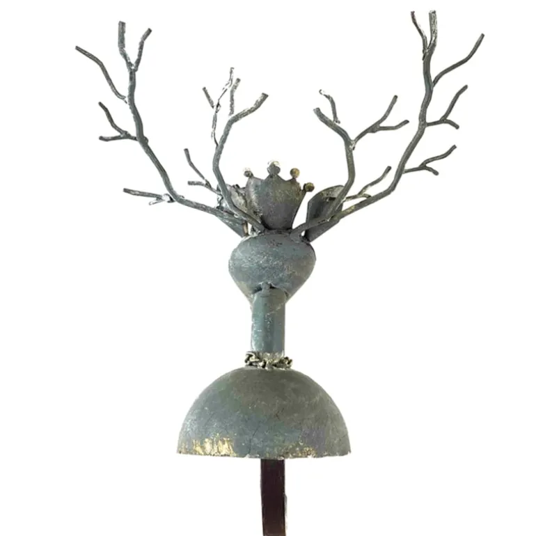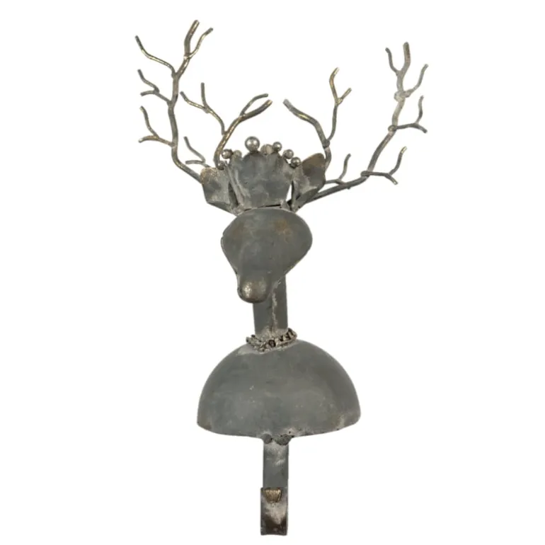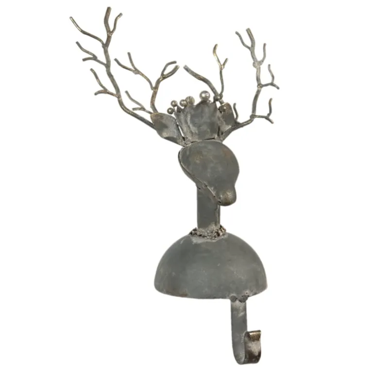 Mooie ijzeren sokhanger met een kettingkje om,een kroontjeopen een gewei op het hoofd.