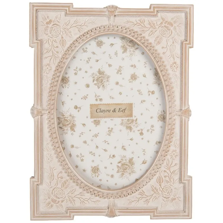 Mooie stijlvolle fotolijst voor een ovale foto. Op de rand vind je een rozenpatroon en de fotolijst is uitgevoerd in een fijnerustige roze kleur.