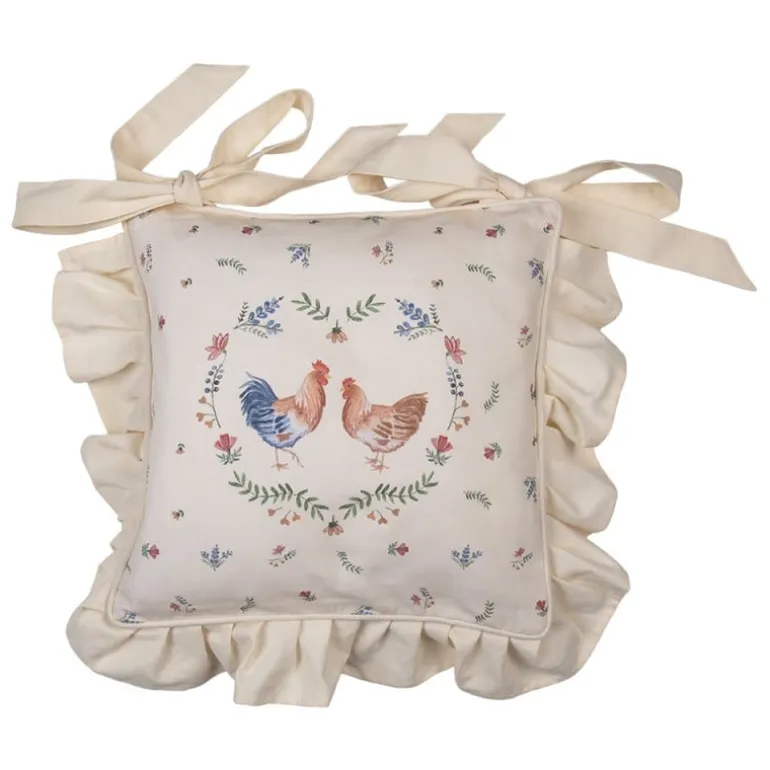 Stoelkussenhoes met rucheChicken and Rooster 40*40