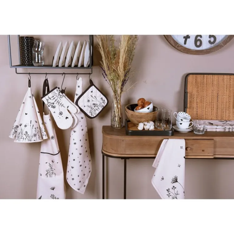 Flora and Fauna is de naam van de mooie strakke textielserie van Clayre & Eef die zich thuis zal voelen in elk modern interieur. Omarm de natuur met haar bloemetjes en bijtjes, ook vind je hier en daar een hartje.Een serie die op vele vlakken een aanvulling zal zijn, denk aan keukentextiel zoals keukendoeken, keukenschorten, pannenlappen en ovenhandschoenen. Maar ook aan tafel zal deze mooie serie voor veel sfeer zorgen. Tafelkleden, broodmandjes, placemats en servetten zorgen voor een mooi gedekte tafel en met het aanvullende servies is deze hele serie een absolute must-have. Geniet van de Flora en Fauna en de mooie momenten aan en om tafel!