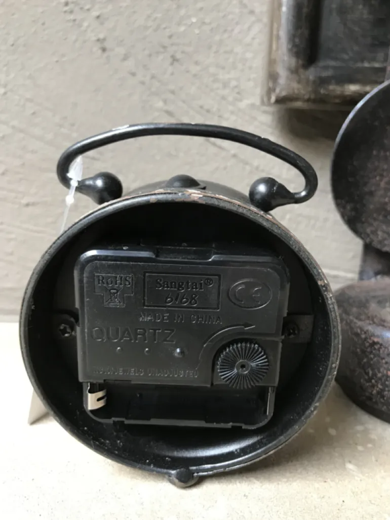 Het klokje is oud gemaakt en heeft daardoor een brocante uitstraling