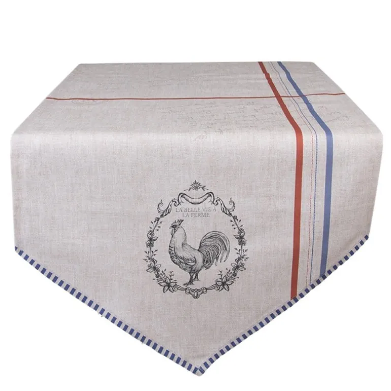 Deze tafelloper met een prachtige haan en een rood en blauwe streep van het merk Clayre & Eef is een ware toevoeging op jouw eettafel door het unieke motief. Het zorgt voor een warme sfeer tijdens het eten en is uiteraard praktisch in gebruik. De tafelloper is gemaakt van 100% katoen en voelt heerlijk aan. De tafelloper kan gewassen worden, maar een kleine tip; voeg een scheutje azijn toe tijdens het wassen voor een optimaal resultaat. Voeg sfeer toe aan je tafel met de tafellopers van Clayre & Eef!