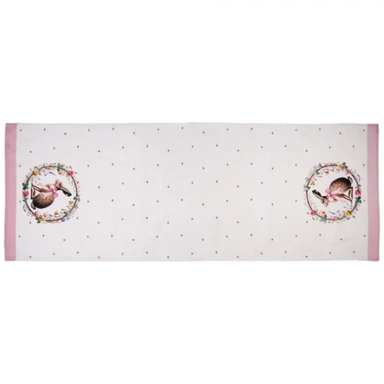 Tafelloperhaas en roosjes roze 50*140