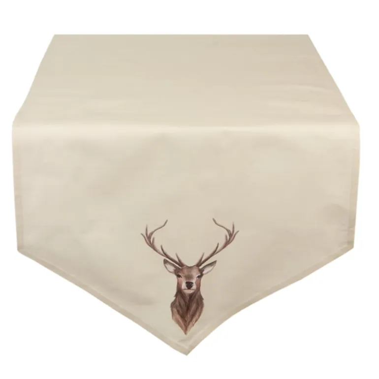 Een effen beige stof met een print van een rendier met gewei en een landelijke geruite stof. Sommige artikelen van deze serie zijn afgewerkt met een mooie band, ook met een print vaneen rendier met gewei.