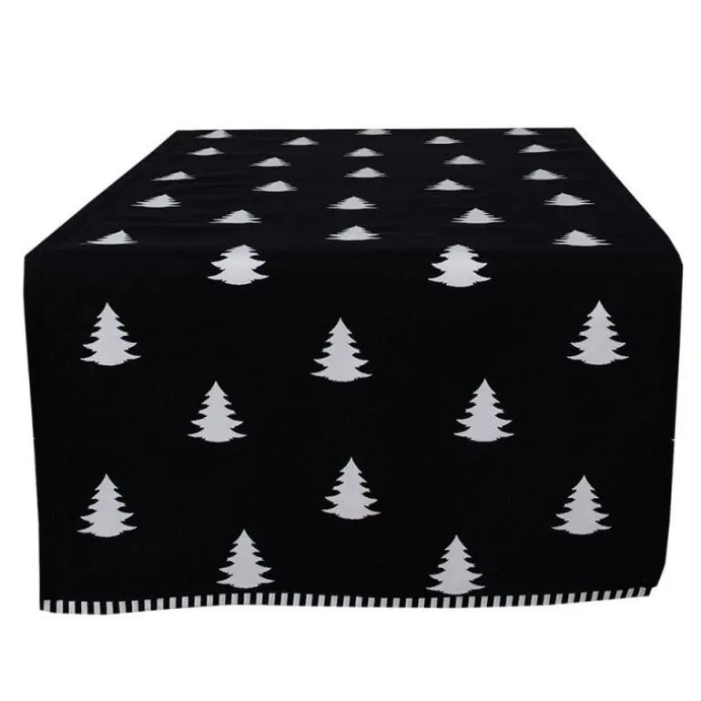 Tafelloper kerstboom zwart/wit