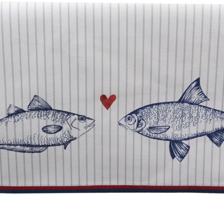 Met deze leuke textielserieSunSea and Fishvan Clayre & Eef is het vakantiegevoelmeteen binnen handbereik. Het prachtig vormgegeven vissen-paar staat in deze serie centraal en zorgt voor een fijne dosis liefde middels de leuke rode hartjes in het design. Net zoals je met liefde de tafel dekt voor het gezin of voor gasten. Deze serie is functioneel, die zowel op tafel als in de keuken of eetkamer een zomers tintje geeft. Ook erg leuk en toepasselijk voor in de camper of op de boot! Met items zoals tafellopers, servetten, broodmandjesen het bijpassende servies is eten in de buitenlucht een feest. Geniet van deze zomerse collectie!