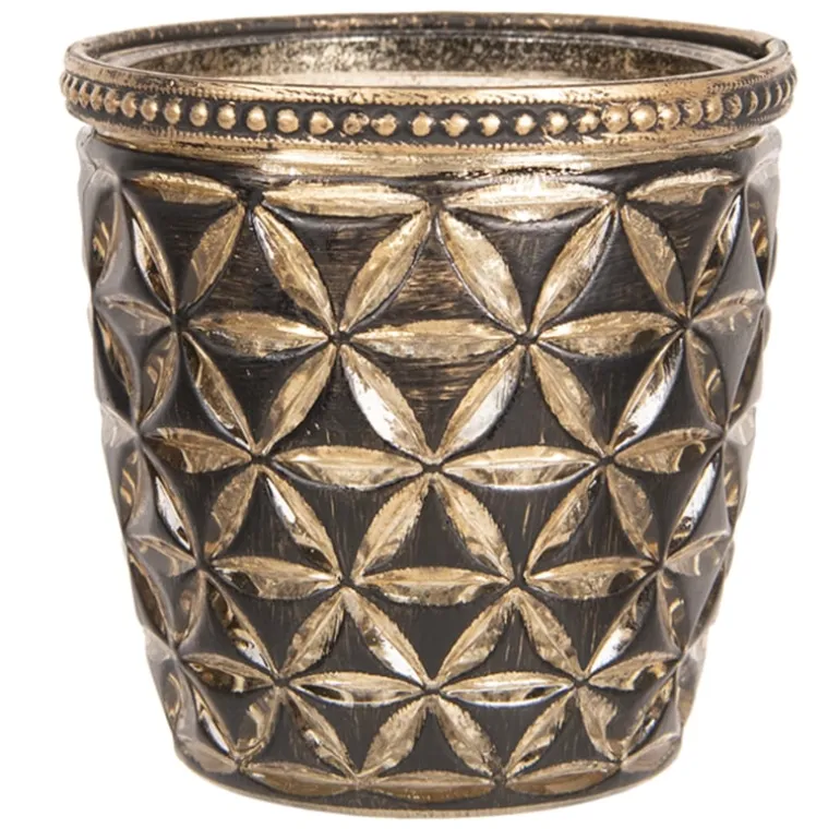 Waxinelichthoudermet een mooie motiefje en een metalen rand,super leuk om met andere waxinelichthouders te combineren op een dienblad!