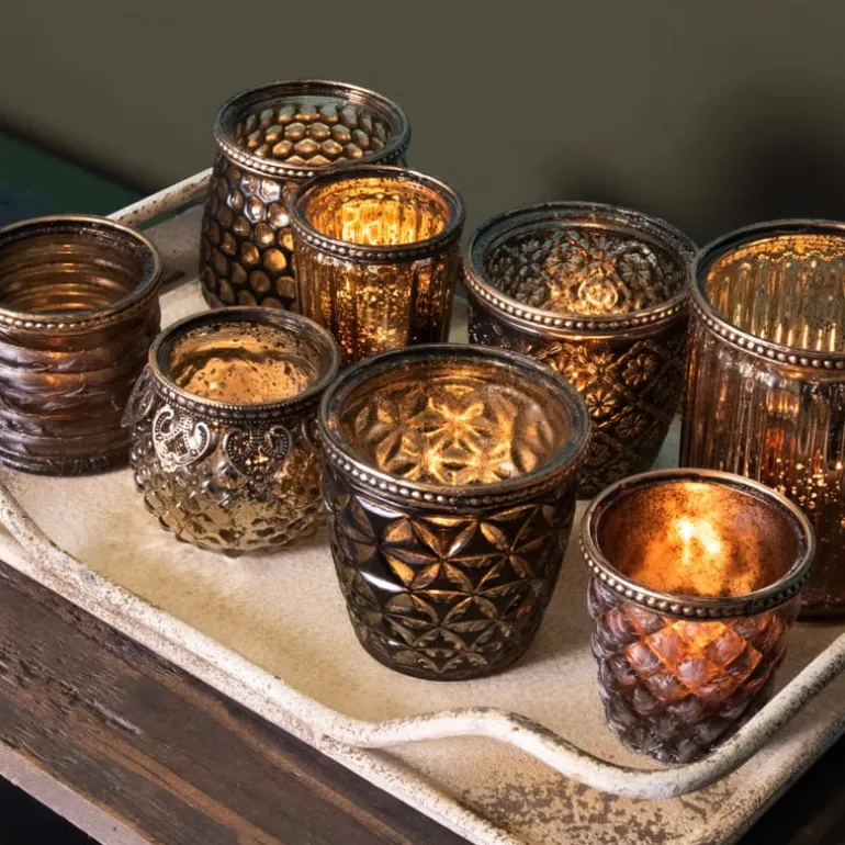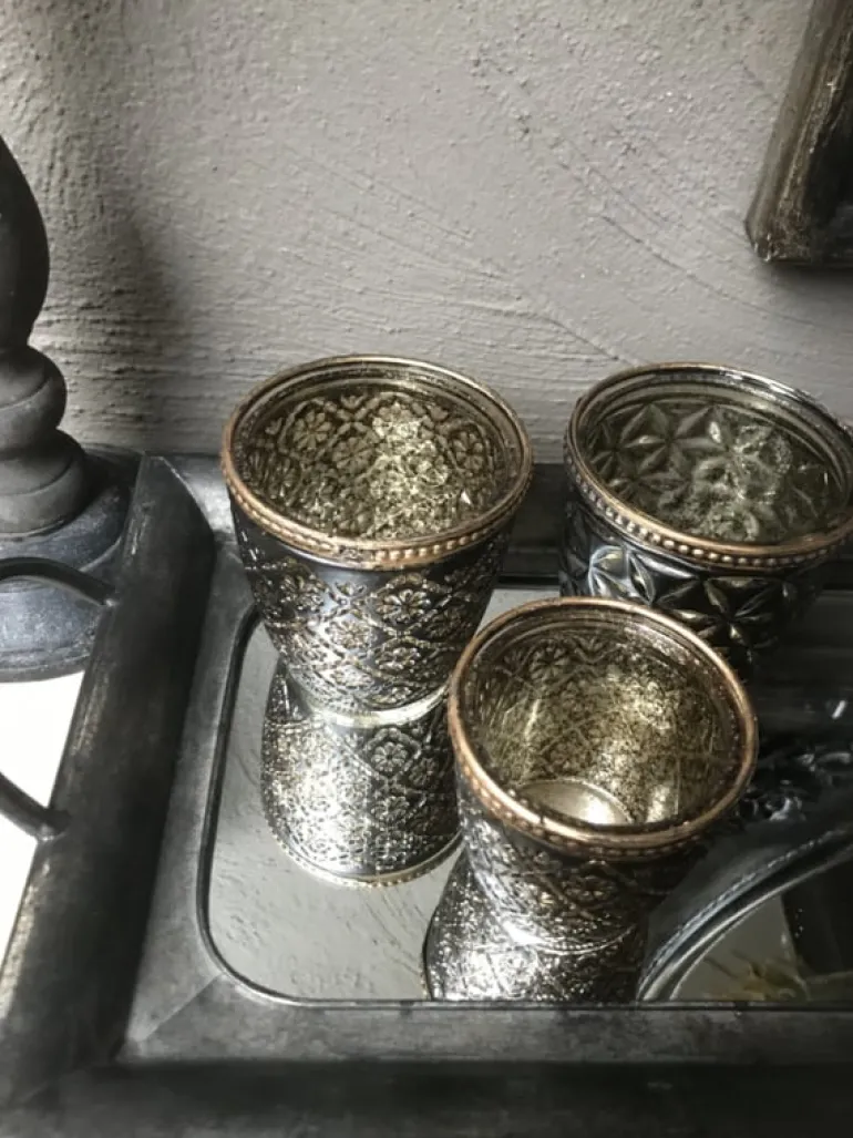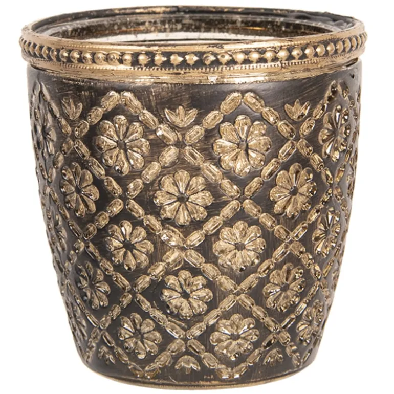 Waxinelichthoudermet een mooie motiefje en een metalen rand,super leuk om met andere waxinelichthouders te combineren op een dienblad!